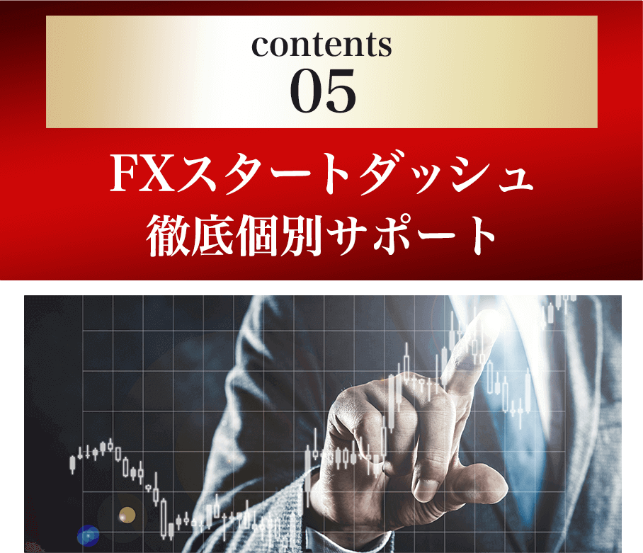 FRCでは、0からFXをスタートできるよう、1対1の個別チャットサポートをご用意し、あなたが実際にFXを実践できるようになるまで、初期設定や用語解説など丁寧にサポートさせていただきます。