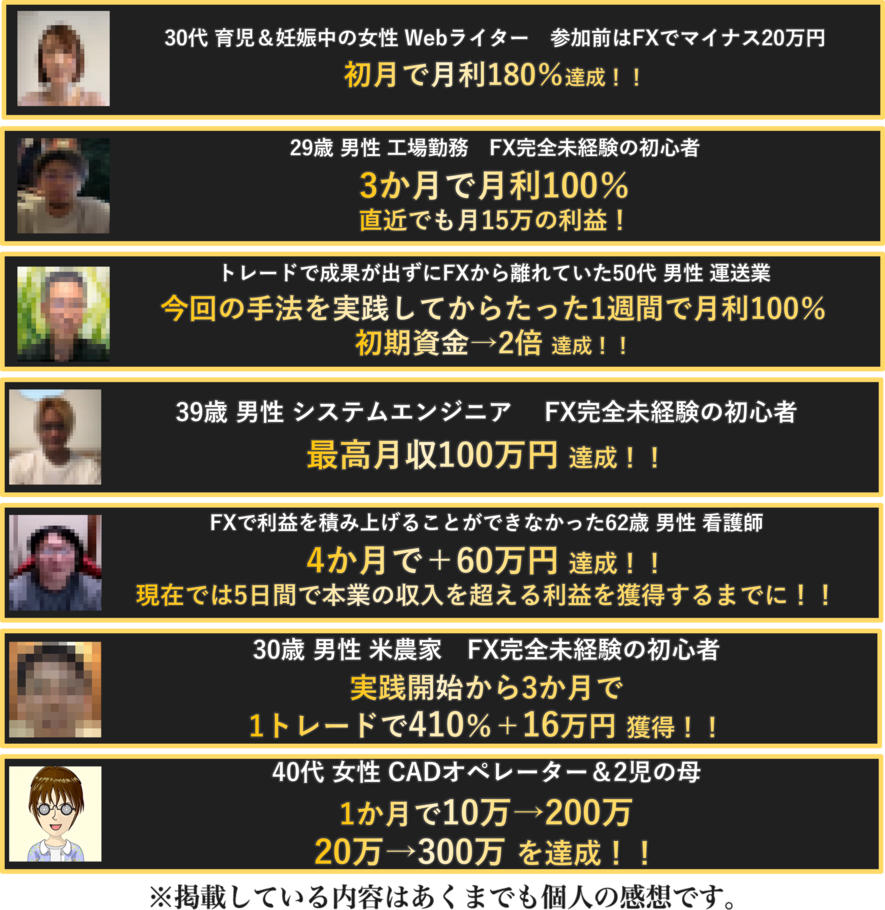 「投資の世界に絶対はない」のは間違いないですが、正直なところ、参加後わずか数日~数週間で参加費用を簡単に回収してしまう人もザラにいます。